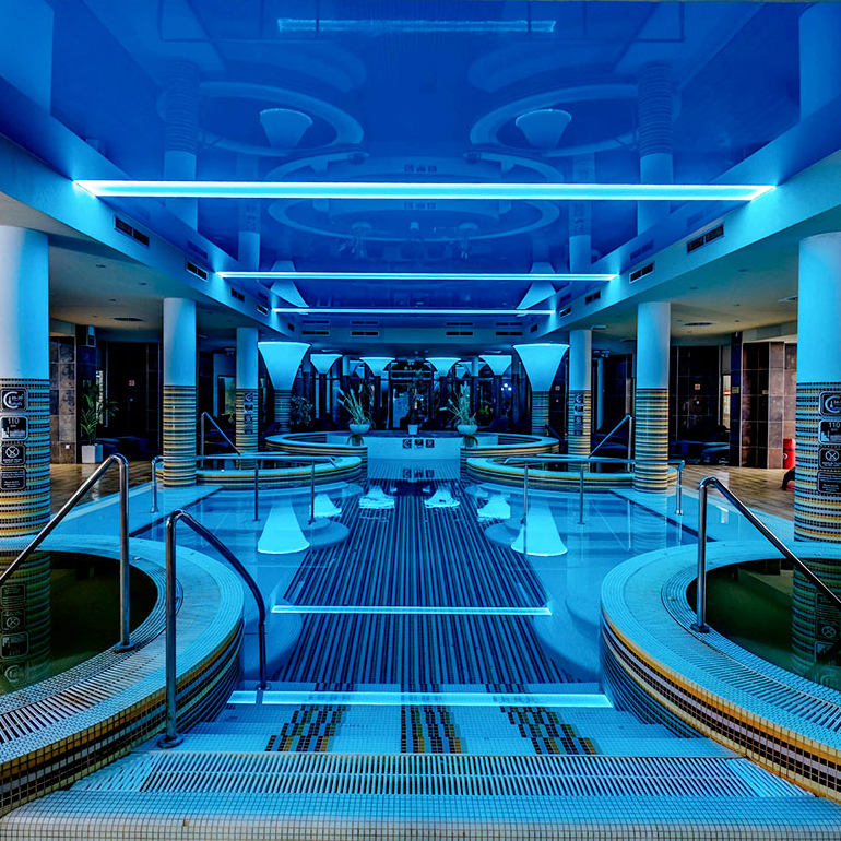 - Wellness részleg használat: beltéri medence sodrófolyosóval, beltéri termálvizes medence, 4 termálvizes jakuzzi, gyerekmedence csúszdával, sóterápiás infraszauna, 2 féle finnszauna (40 fős és 16 fős), aromakabin, sókamra, merülőmedence